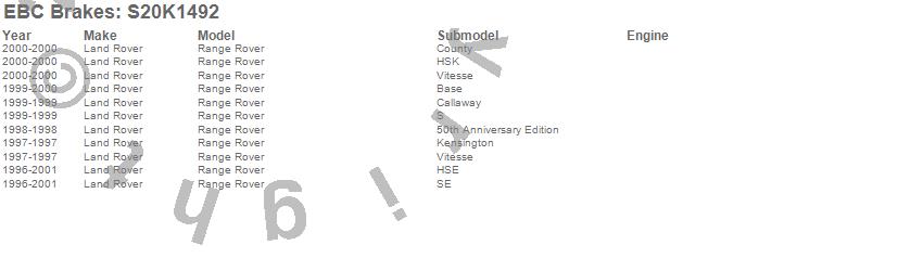 Below is an abreviated list of applications for the S20 Kits Ultimax and Plain Rotors.