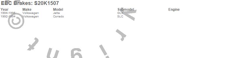 Below is an abreviated list of applications for the S20 Kits Ultimax and Plain Rotors.
