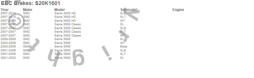 Below is an abreviated list of applications for the S20 Kits Ultimax and Plain Rotors.