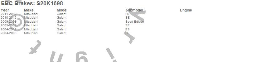 Below is an abreviated list of applications for the S20 Kits Ultimax and Plain Rotors.