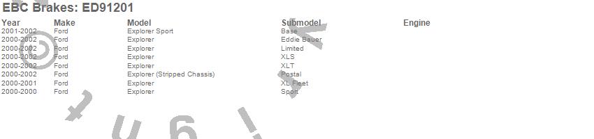 Below is an abreviated list of applications for the EBC Truck/Jeep And SUV Extra Duty Brake Pads.