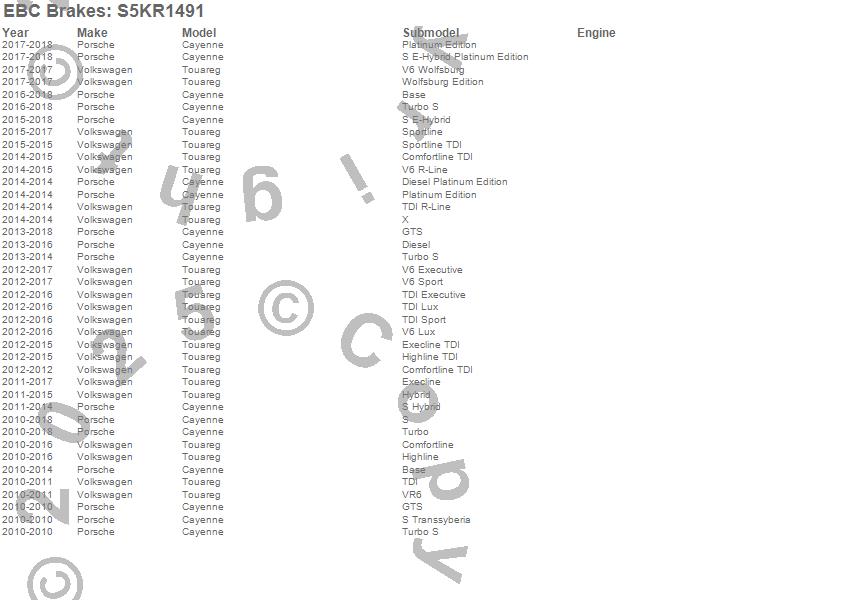 Below is an abreviated list of applications for the S5 Kits yellowstuff And GD Rotors.