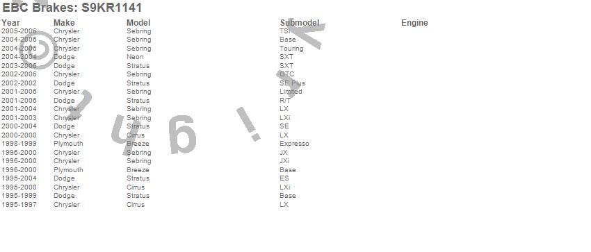 Below is an abreviated list of applications for the S9 Kits Yellowstuff and USR Rotors.