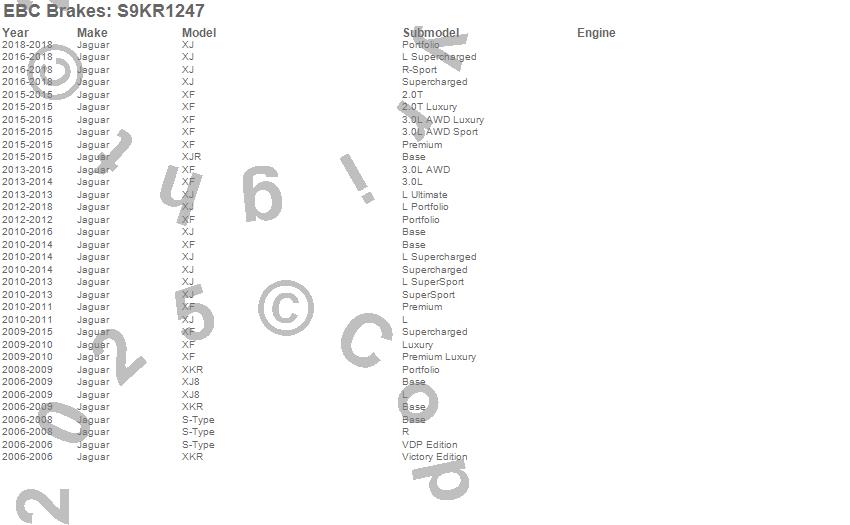 Below is an abreviated list of applications for the S9 Kits Yellowstuff and USR Rotors.