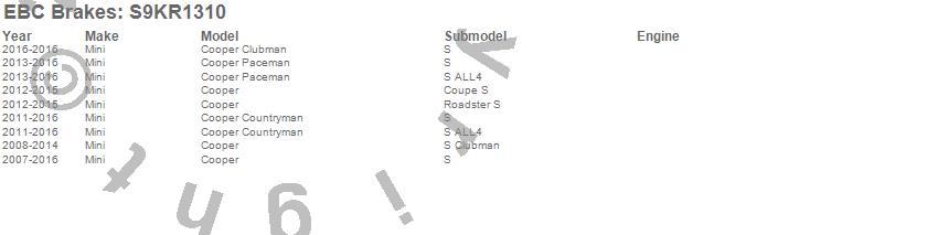 Below is an abreviated list of applications for the S9 Kits Yellowstuff and USR Rotors.