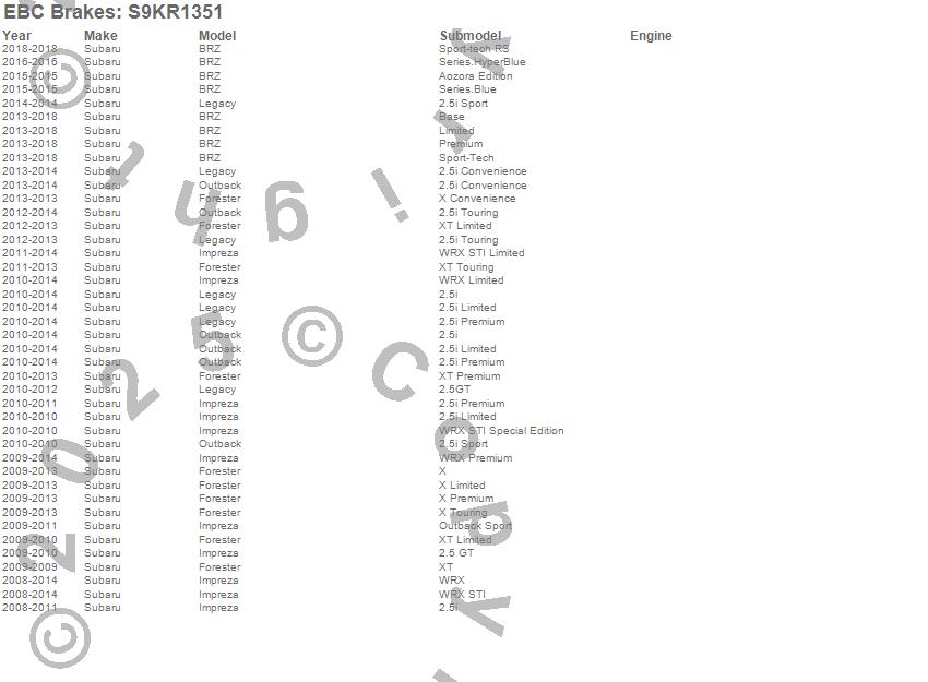 Below is an abreviated list of applications for the S9 Kits Yellowstuff and USR Rotors.