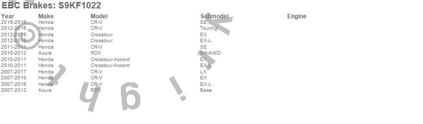 Below is an abreviated list of applications for the S9 Kits Yellowstuff and USR Rotors.