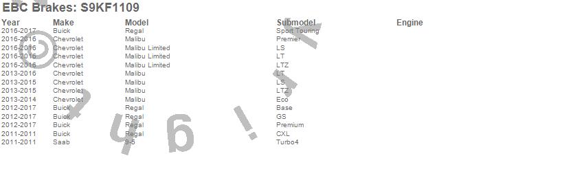 Below is an abreviated list of applications for the S9 Kits Yellowstuff and USR Rotors.