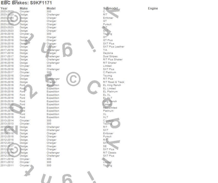 Below is an abreviated list of applications for the S9 Kits Yellowstuff and USR Rotors.
