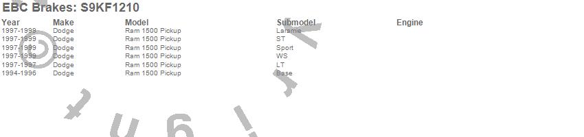 Below is an abreviated list of applications for the S9 Kits Yellowstuff and USR Rotors.