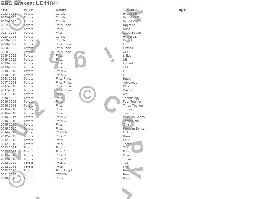 Below is an abreviated list of applications for the EBC Ultimax OEM Replacement Brake Pads.