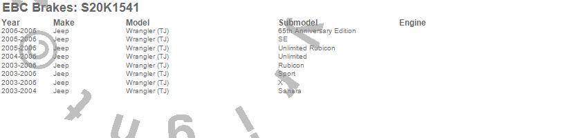 Below is an abreviated list of applications for the S20 Kits Ultimax and Plain Rotors.