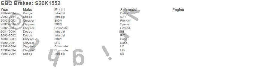 Below is an abreviated list of applications for the S20 Kits Ultimax and Plain Rotors.