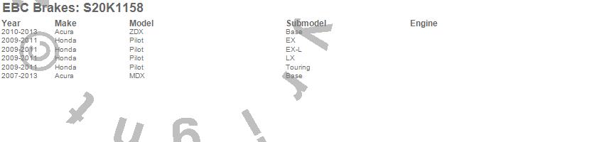 Below is an abreviated list of applications for the S20 Kits Ultimax and Plain Rotors.