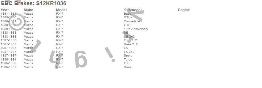 Below is an abreviated list of applications for the S12 Kits Redstuff and RK Rotors.