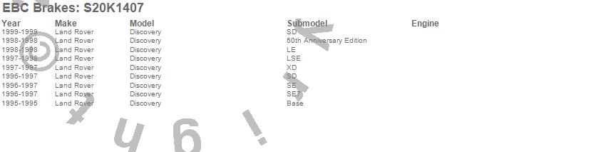 Below is an abreviated list of applications for the S20 Kits Ultimax and Plain Rotors.