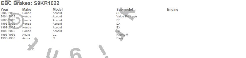 Below is an abreviated list of applications for the S9 Kits Yellowstuff and USR Rotors.