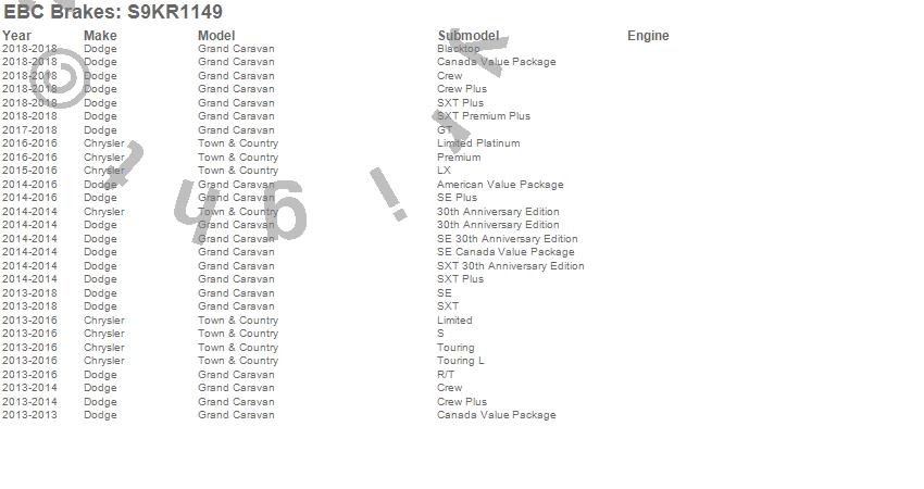Below is an abreviated list of applications for the S9 Kits Yellowstuff and USR Rotors.