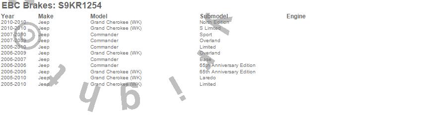 Below is an abreviated list of applications for the S9 Kits Yellowstuff and USR Rotors.