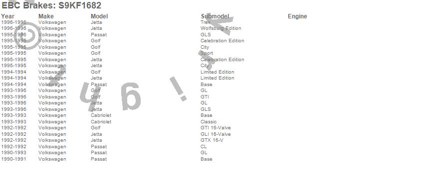 Below is an abreviated list of applications for the S9 Kits Yellowstuff and USR Rotors.