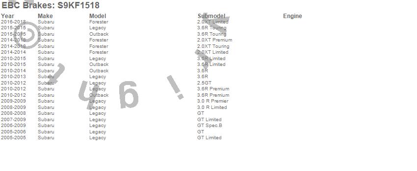 Below is an abreviated list of applications for the S9 Kits Yellowstuff and USR Rotors.