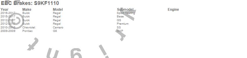 Below is an abreviated list of applications for the S9 Kits Yellowstuff and USR Rotors.