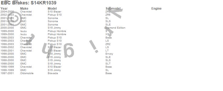 Below is an abreviated list of applications for the S14 Kits Greenstuff and RK Rotors SUV.