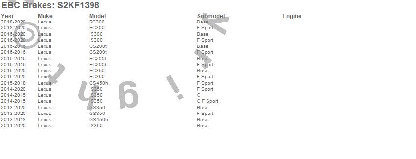 Below is an abreviated list of applications for the S2 Kits Greentuff 2000 and USR Rotors.