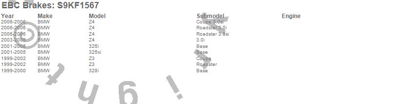 Below is an abreviated list of applications for the S9 Kits Yellowstuff and USR Rotors.