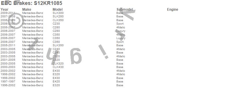 Below is an abreviated list of applications for the S12 Kits Redstuff and RK Rotors.
