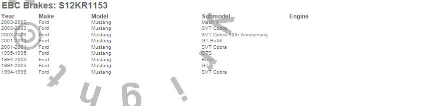 Below is an abreviated list of applications for the S12 Kits Redstuff and RK Rotors.