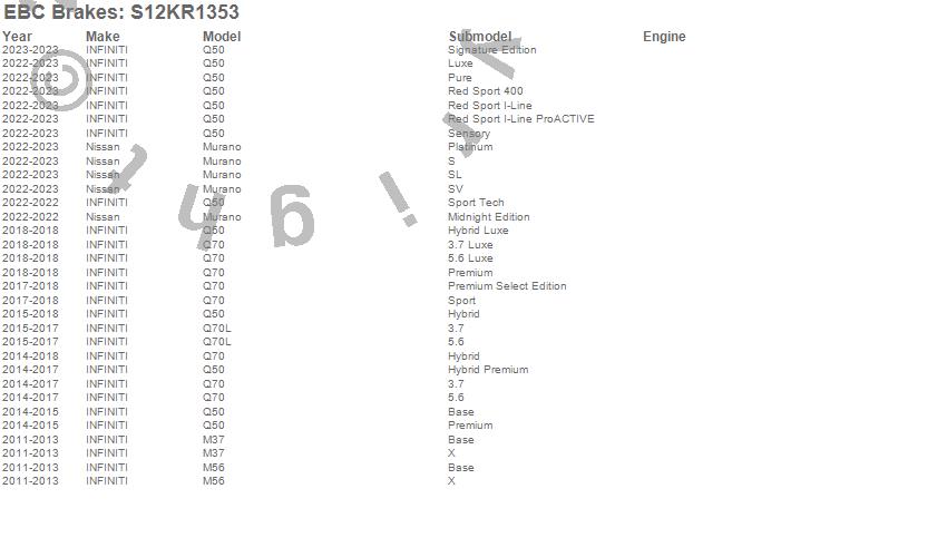 Below is an abreviated list of applications for the S12 Kits Redstuff and RK Rotors.
