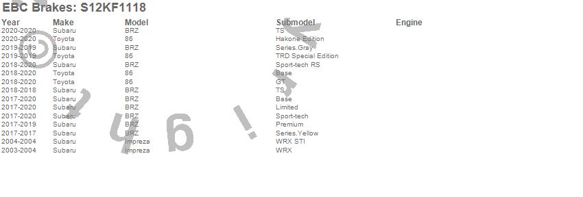 Below is an abreviated list of applications for the S12 Kits Redstuff and RK Rotors.