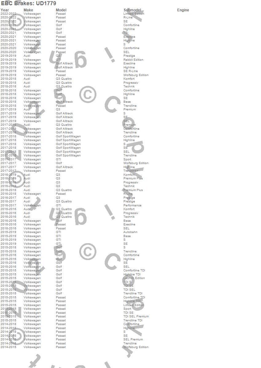 Below is an abreviated list of applications for the EBC Ultimax OEM Replacement Brake Pads.