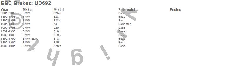 Below is an abreviated list of applications for the EBC Ultimax OEM Replacement Brake Pads. 318i, 318is, 320i, 325i, 325is, 325xi, 328i, 328is, Z3, BMW, BMW (Euro), 2002, 2001, 1999, 1998, 1997, 1996, 1995, 1994, 1993 more…