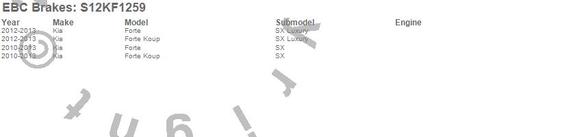 Below is an abreviated list of applications for the S12 Kits Redstuff and RK Rotors.