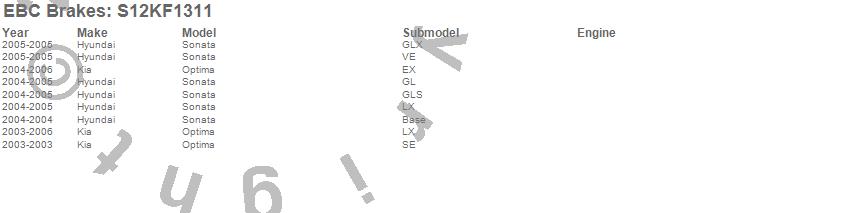 Below is an abreviated list of applications for the S12 Kits Redstuff and RK Rotors.