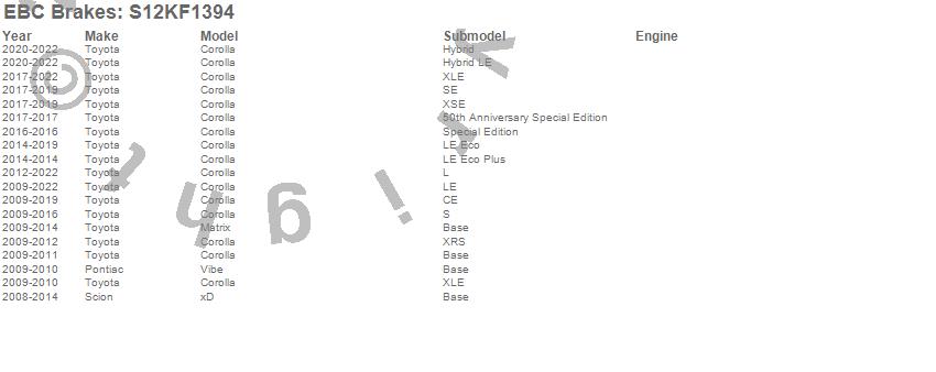 Below is an abreviated list of applications for the S12 Kits Redstuff and RK Rotors.