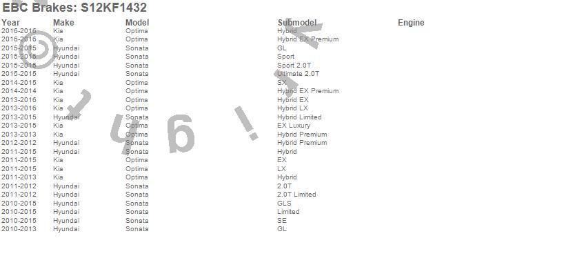 Below is an abreviated list of applications for the S12 Kits Redstuff and RK Rotors.