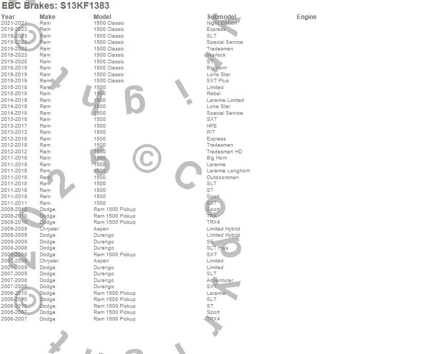 Below is an abreviated list of applications for the S13 Kits Yellowstuff and RK Rotors.