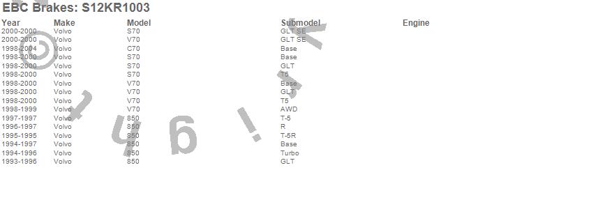 Below is an abreviated list of applications for the S12 Kits Redstuff and RK Rotors.