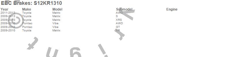 Below is an abreviated list of applications for the S12 Kits Redstuff and RK Rotors.