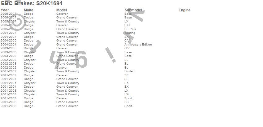Below is an abreviated list of applications for the S20 Kits Ultimax and Plain Rotors.