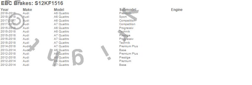 Below is an abreviated list of applications for the S12 Kits Redstuff and RK Rotors.