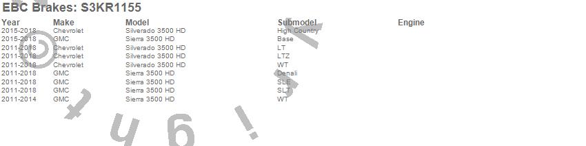 Below is an abreviated list of applications for the S3 Kits Greenstuff 6000 and GD Rotors Truck and SUV.