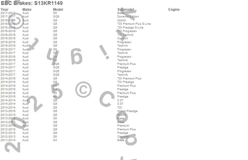 Below is an abreviated list of applications for the S13 Kits Yellowstuff and RK Rotors.