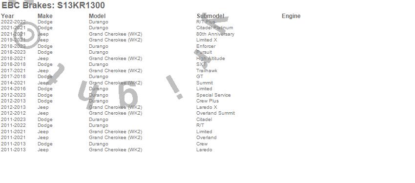 Below is an abreviated list of applications for the S13 Kits Yellowstuff and RK Rotors.