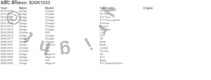 Below is an abreviated list of applications for the S20 Kits Ultimax and Plain Rotors.