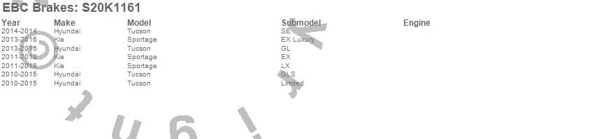 Below is an abreviated list of applications for the S20 Kits Ultimax and Plain Rotors.