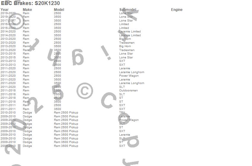 Below is an abreviated list of applications for the S20 Kits Ultimax and Plain Rotors.